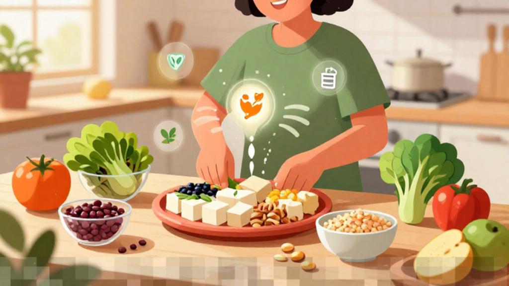 Protein adalah nutrisi yang sangat penting untuk pertumbuhan dan perbaikan jaringan tubuh. Untuk memenuhi kebutuhan protein, vegetarian bisa mengandalkan berbagai sumber nabati seperti tempe, tahu, edamame, lentil, chickpea, serta kacang almond dan kacang tanah. Mengombinasikan berbagai sumber protein nabati juga membantu tubuh mendapatkan asam amino esensial yang dibutuhkan. Selain itu, protein nabati memiliki dampak lingkungan yang lebih rendah dibandingkan dengan sumber protein hewani, karena jejak karbon yang dihasilkan jauh lebih sedikit dan lebih berkelanjutan.